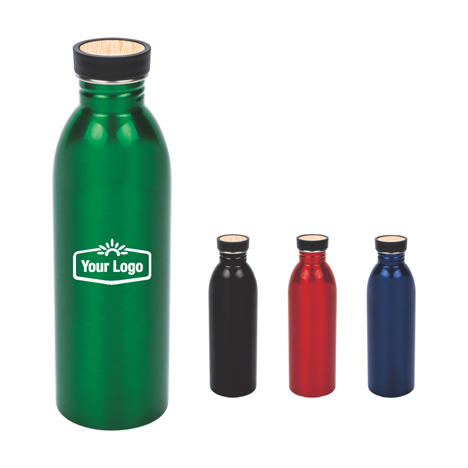 Single Wall Stainless Steel Bottle With Bamboo Lid